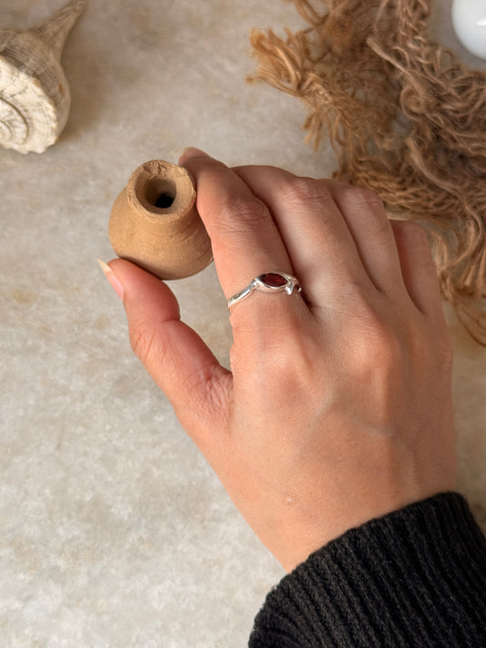 925 Sterling Silver Garnet Marquise Solitaire Ring