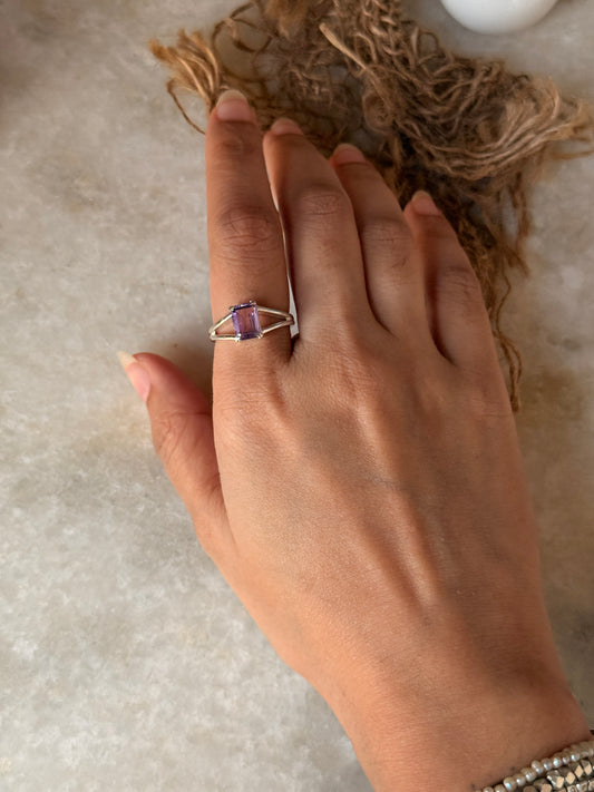 925 Sterling Silver Amethyst Rectangle Ring