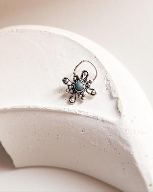 925 Sterling Silver Tribal Rawa Turquoise Wired Back Nose pin