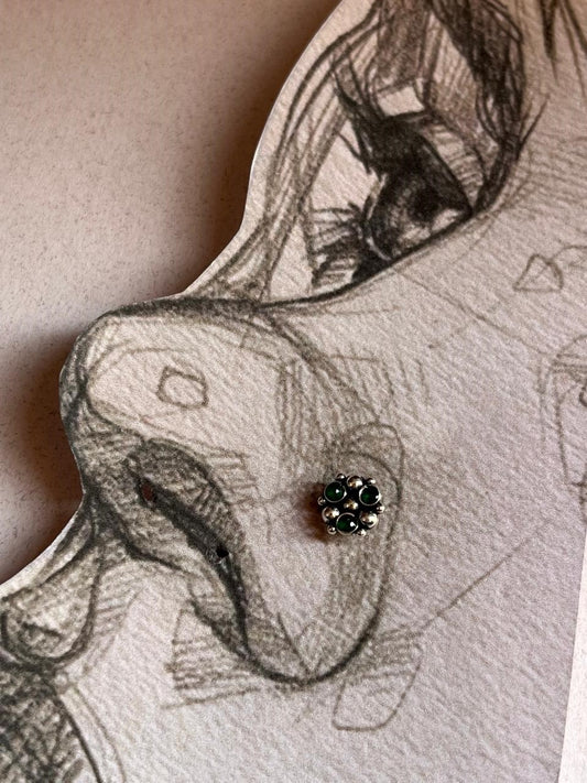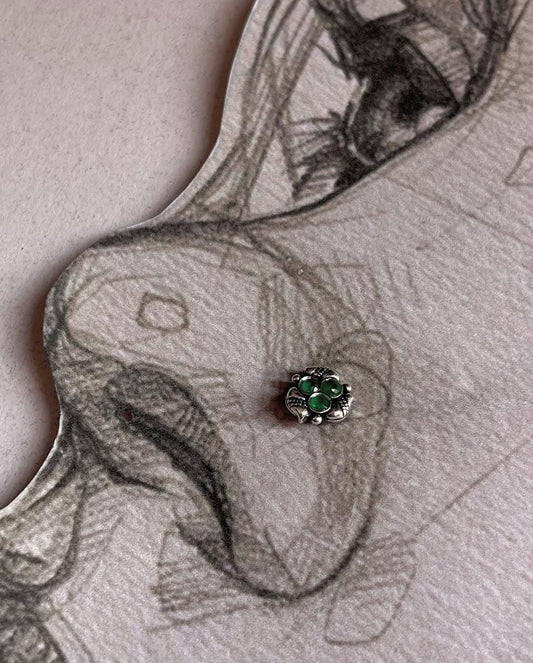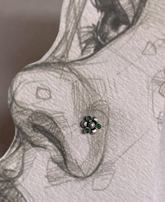 925 Sterling Silver Tribal Rawa Green Cz Stone Wired Back Nose pin