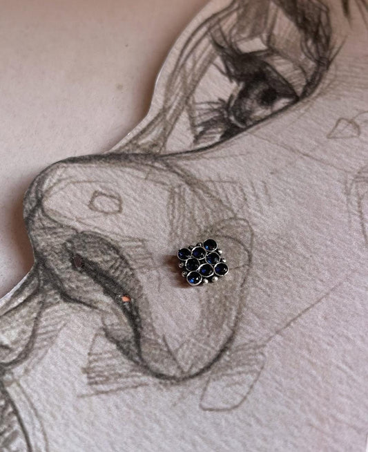 925 Sterling Silver Tribal Rawa Blue Cz Stone Wired Back Nose pin