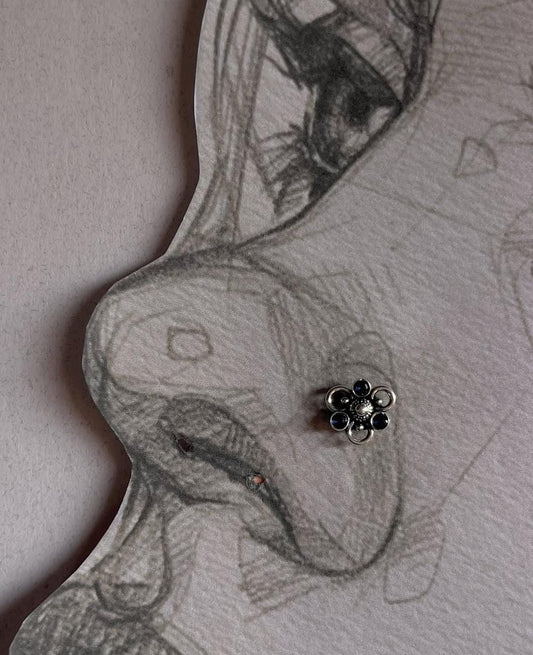 925 Sterling Silver Tribal Rawa Black Onyx Mandala Wired Back Nose pin