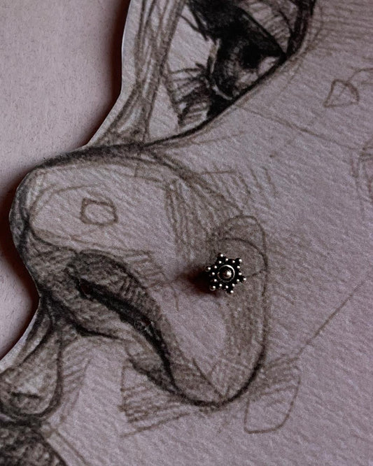 Nose / Helix 925 Sterling Silver Clip On - Antique Rawa Flower 2