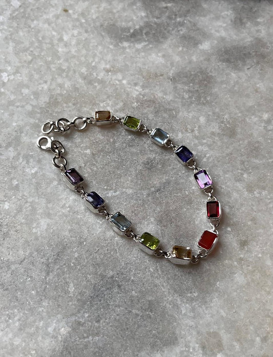 Seven Chakra Rectangle 925 Sterling Silver Bracelet