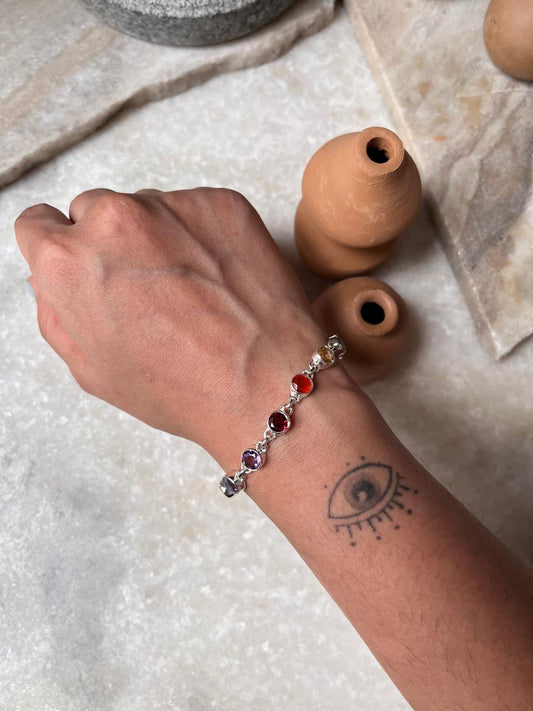 Seven Chakra Round 925 Sterling Silver Bracelet