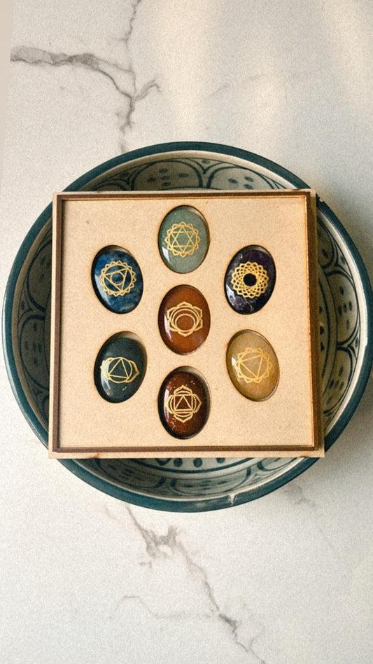 Seven Chakra Palm Stone Wooden Box