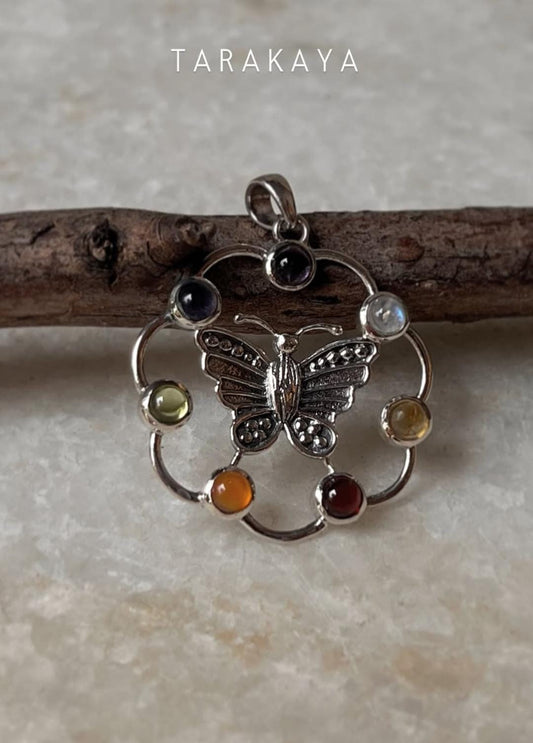 Seven Chakra Butterfly 925 Sterling Silver Pendant