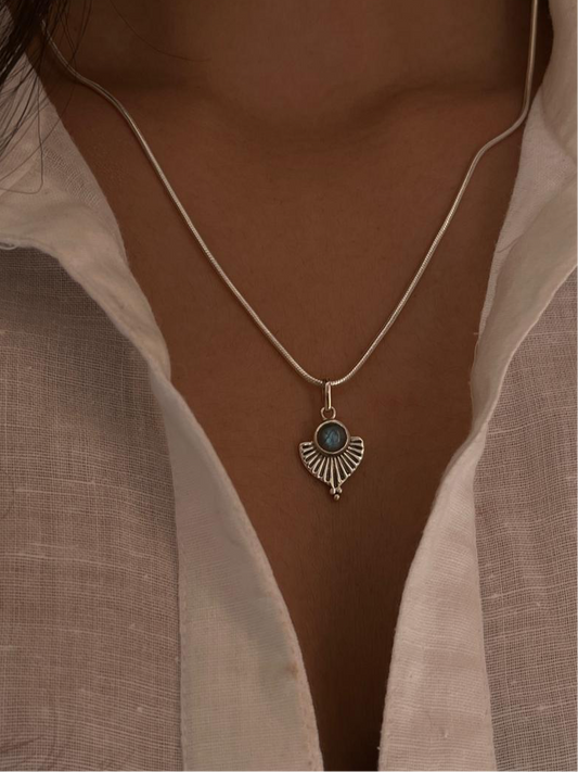 925 Sterling Silver Labradorite Boho Fan Necklace