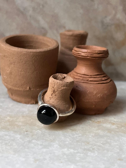 925 Sterling Silver Black Onyx Round Plain Ring