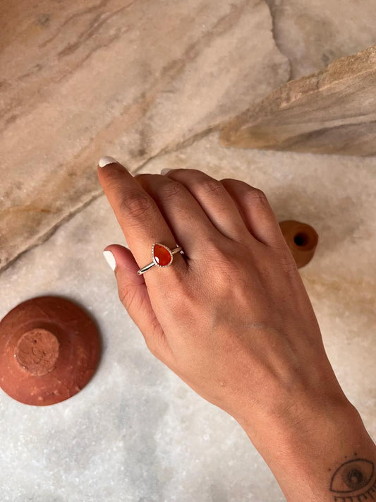925 Sterling Silver Carnelian Pear Ring