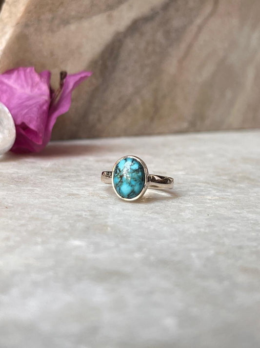 925 Sterling Silver Natural Turquoise Oval Ring