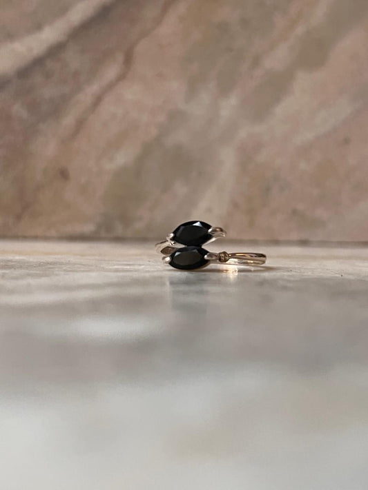 925 Sterling Silver Black Onyx Marquise Double Stone Cut Ring