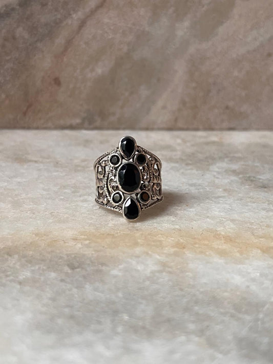 925 Sterling Silver Black Onyx Vintage Filigree Ring