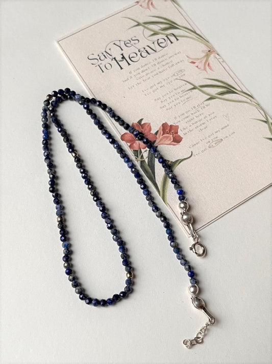 Lapis Lazuli 2MM Boho Choker 925 Sterling Silver Ball Necklace