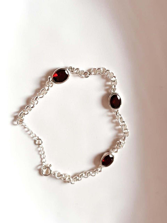 Garnet 3 Stone 925 Sterling Silver Bracelet