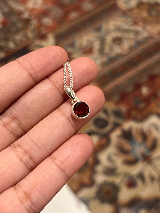 Garnet Solitaire With Chain Attached 925 Sterling Silver Necklace