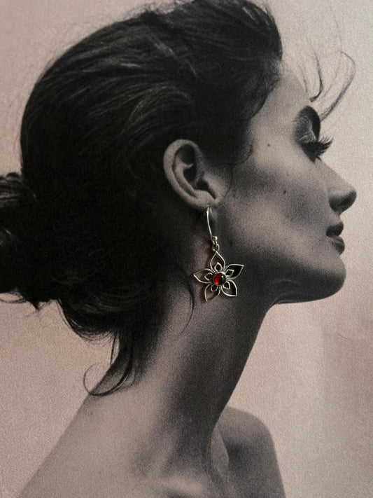 Garnet Flower 925 Sterling Silver Earrings