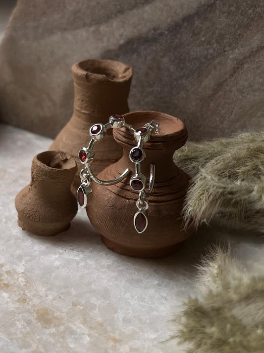 Garnet Half Hoops 925 Sterling Silver Earrings