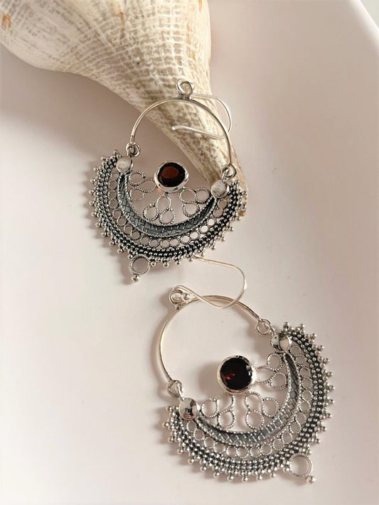 Chandbali Garnet 925 Sterling Silver Statement Earrings