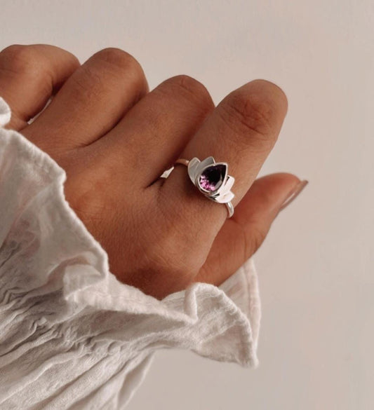 925 Sterling Silver Amethyst Divine Lotus Ring