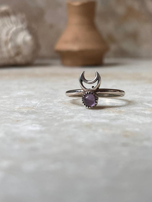 925 Sterling Silver Amethyst Crescent Moon Ring