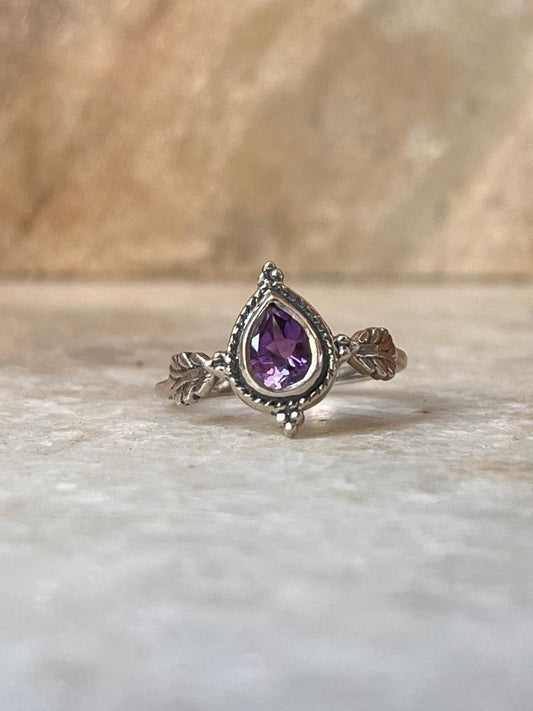 925 Sterling Silver Amethyst Pear Cut Boho Ring