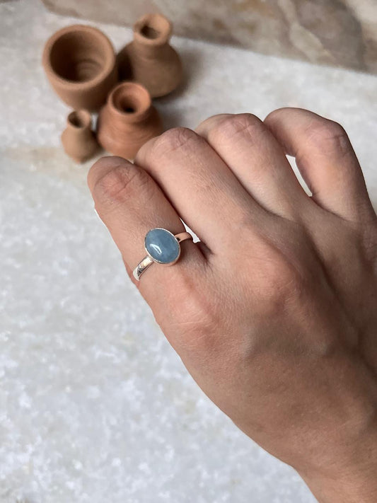 925 Sterling Silver Natural Aquamarine Natural Oval Daily Wear Ring