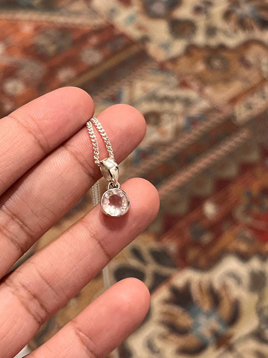 Clear Quartz Round Cut 925 Sterling Silver Pendant
