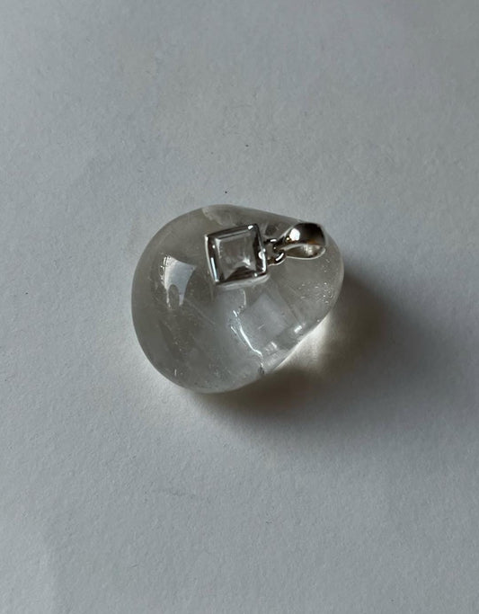 Clear Quartz Square Cut 925 Sterling Silver Unisex Pendant