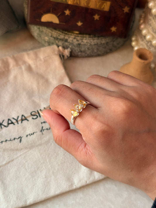 925 Sterling Silver Citrine 3 Pear Solitaire Ring