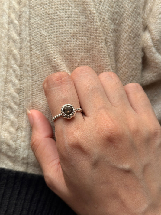 925 Sterling Silver Smokey Quartz Dot Band Ring