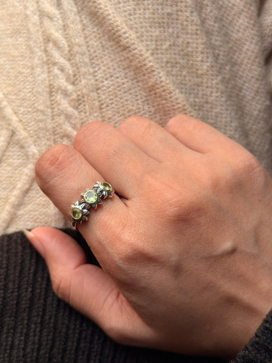 925 Sterling Silver Peridot 3 Flower Ring