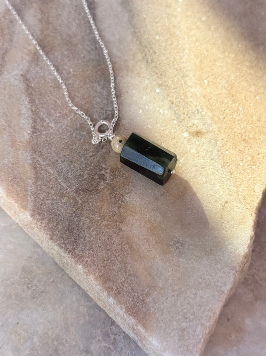 Serpentine, Dalmatian Jasper Crystal 925 Sterling Silver Necklace