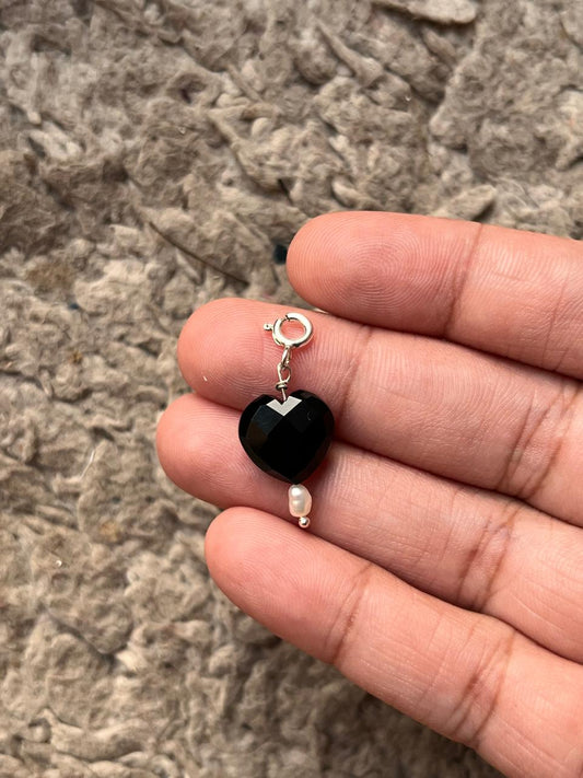Black Onyx Heart with Pearl Crystal 925 Sterling Silver Charm