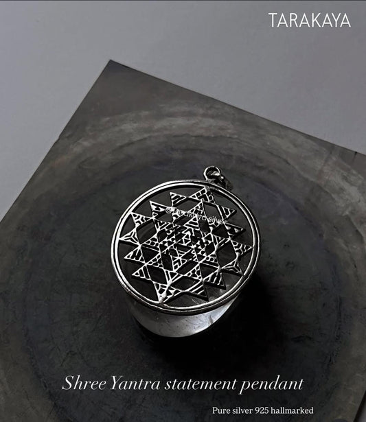 Big Round Shree Yantra 925 Sterling Silver Pendant