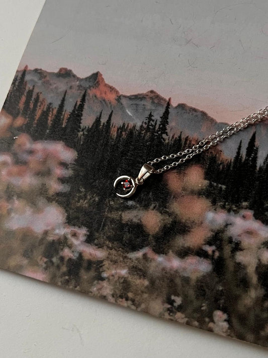 Garnet Small Crescent Moon 925 Sterling Silver Necklace