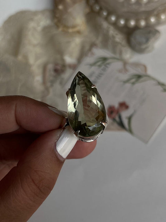 Green Amethyst Big Pear 925 Sterling Silver Ring