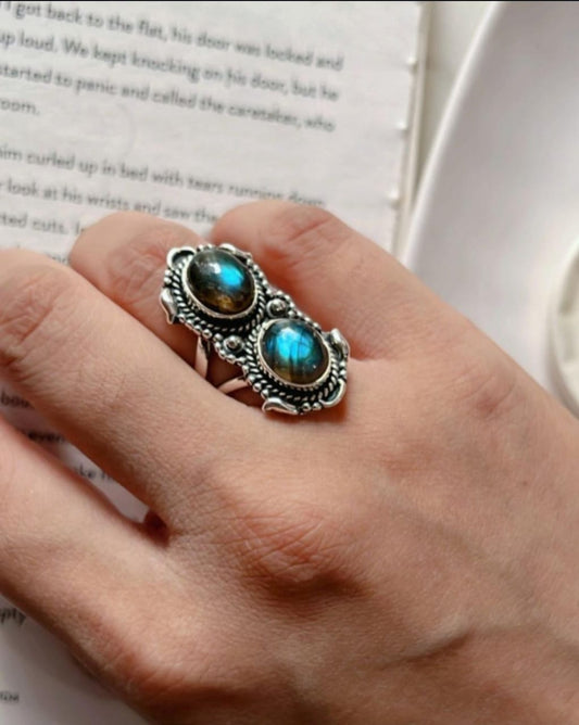 Labradorite Boho Statement 925 Sterling Silver Ring