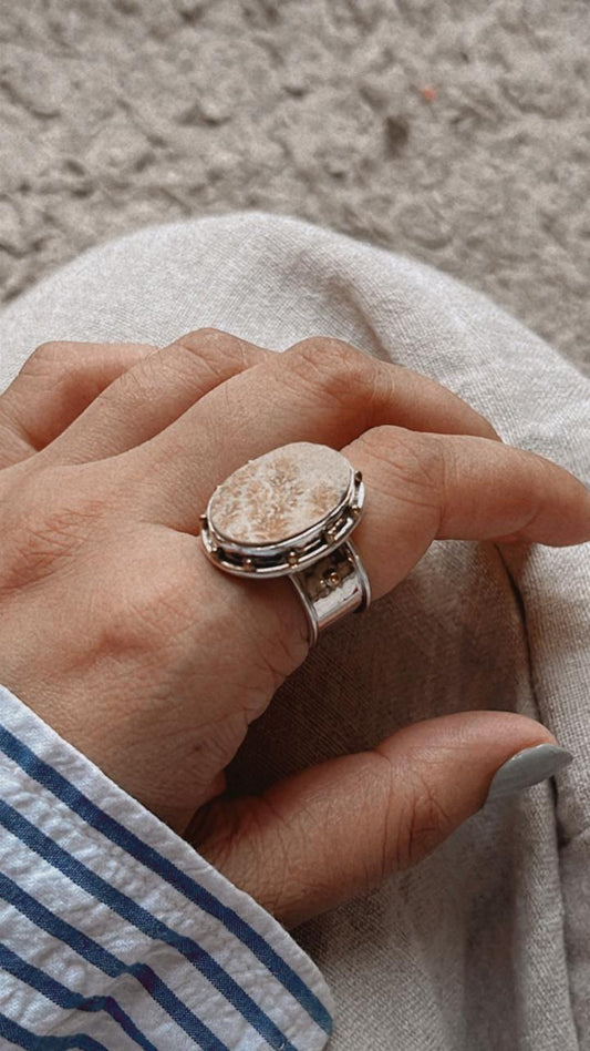 Picture Jasper Boho Statement 925 Sterling Silver Ring