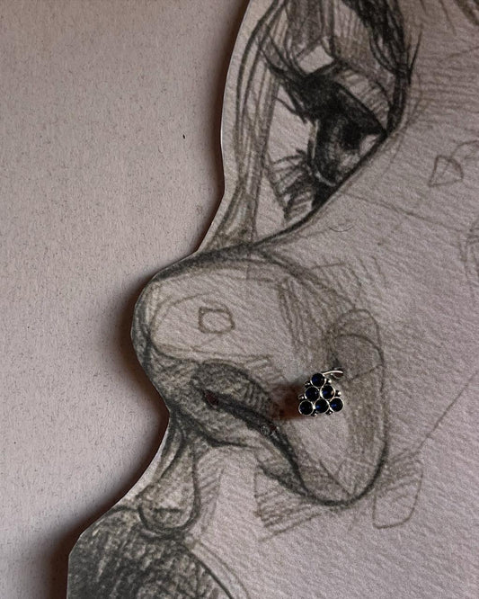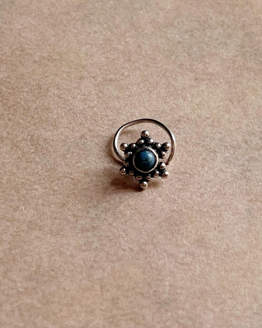 Tribal Rawa Blue Cz Stone Wired Back 925 Sterling Silver Nose pin