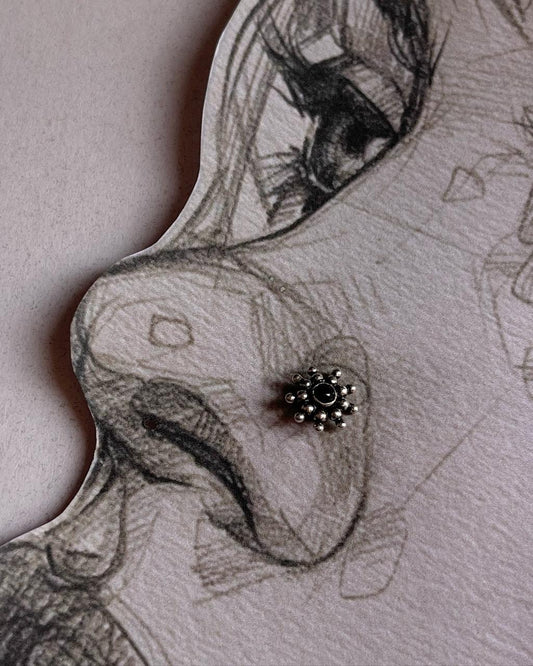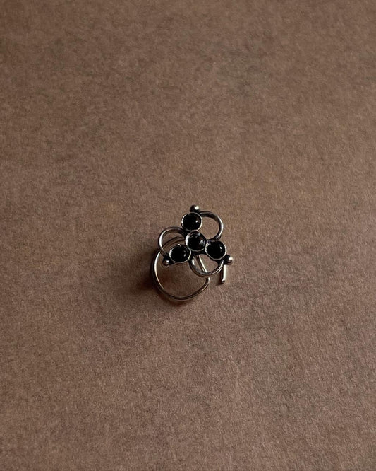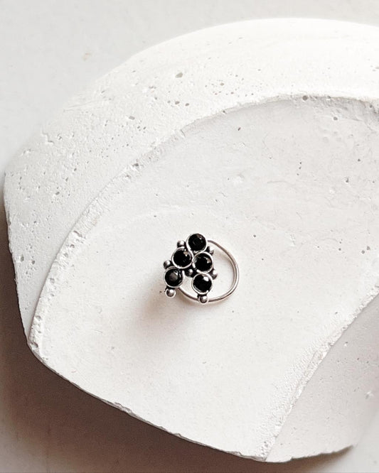 Tribal Rawa Black Onyx Mandala Wired Back 925 Sterling Silver Nose pin