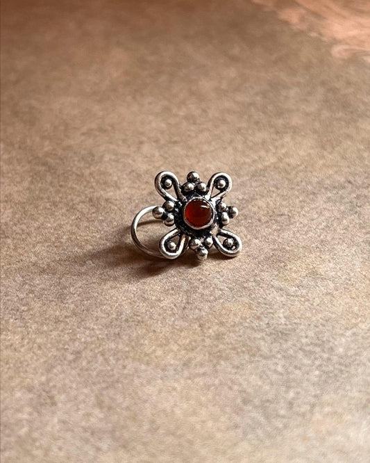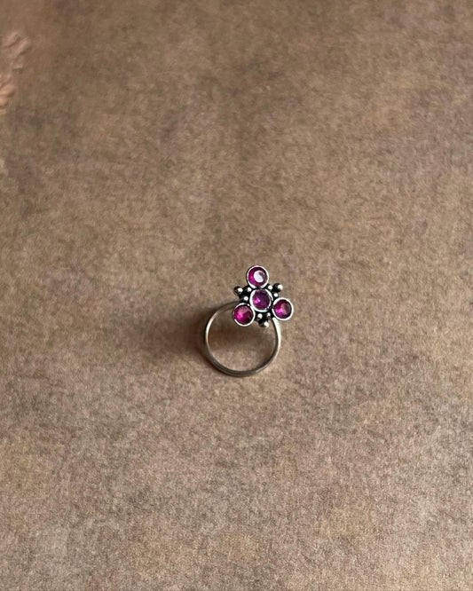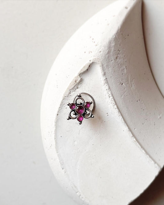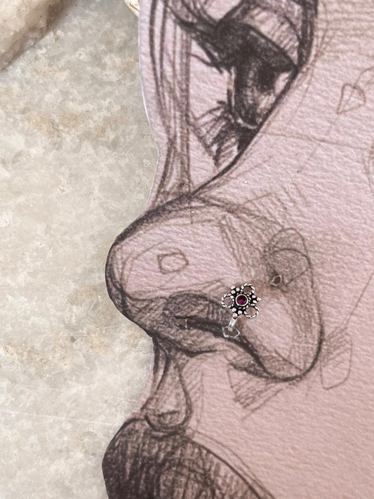 Tribal Rawa Floral Pink Cz Stone Wired Back 925 Sterling Silver Nose pin