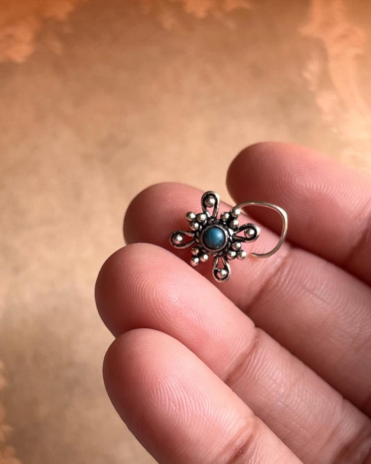 Tribal Rawa Turquoise Wired Back 925 Sterling Silver Nose pin