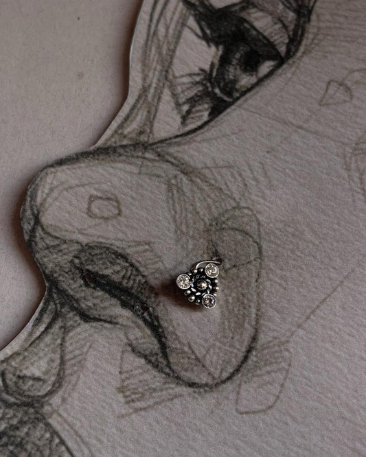 Tribal Rawa Black Cz Stone Wired Back 925 Sterling Silver Nose pin