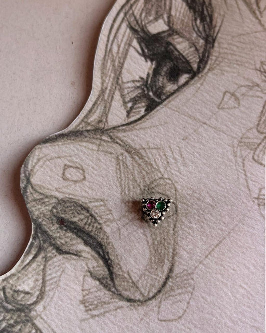 Tribal Rawa Multi Color Cz Wired 925 Sterling Silver Nose Pin