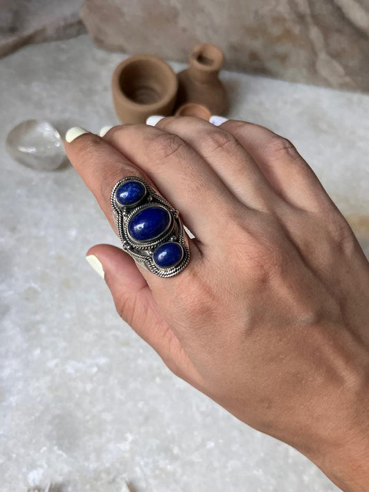 Lapis Lazuli Boho Statement 925 Sterling Silver Ring