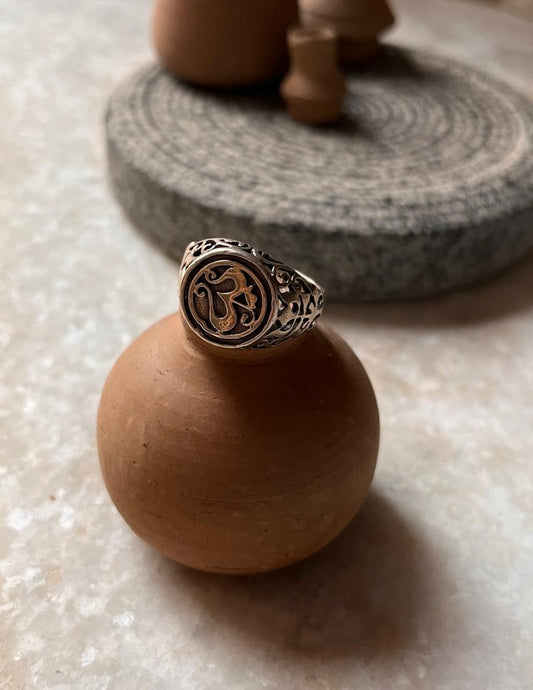 Antique Om/ Aum Trishul 925 Sterling Silver Ring