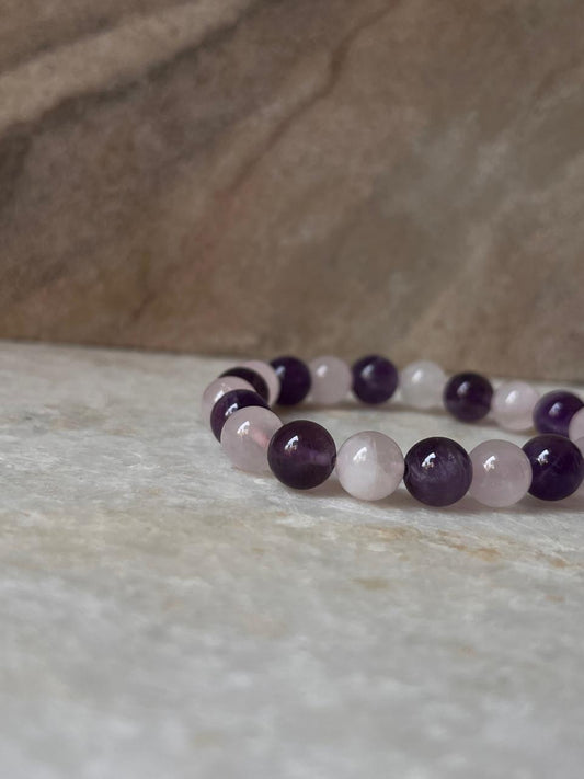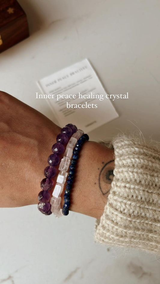Combo Inner Peace- Amethyst Diamond Cut 8mm + Rose Quartz Rectangle 8mm + Lapis Faceted 4mm Natural Crystal Bracelet