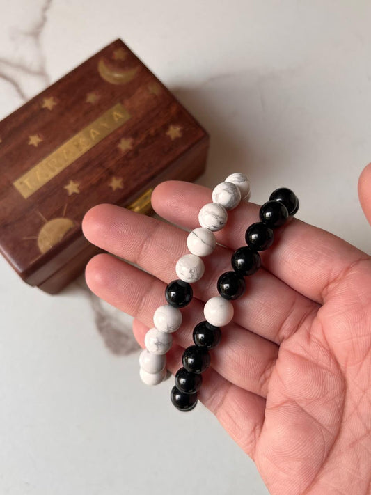 Couple Howlite / Black Tourmaline 8mm Natural Crystal Bracelet