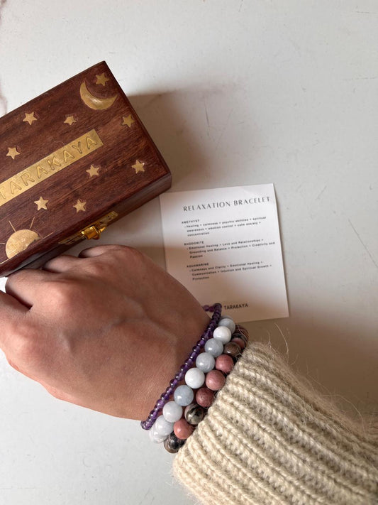 Combo Relaxation- Rhodonite 8mm + Aquamarine 8mm + Amethyst 4mm Natural Crystal Bracelet